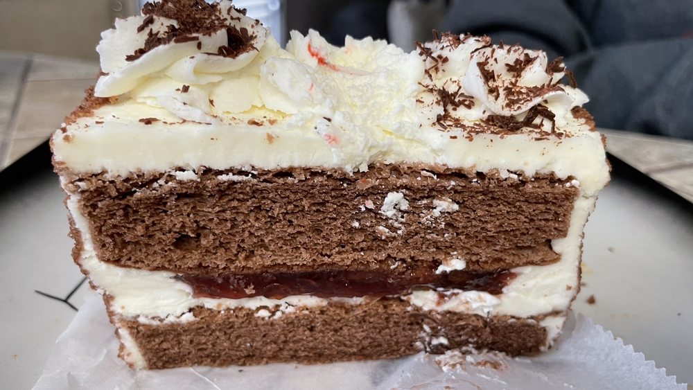 10 slices Viennese, German chocolate, strawberry delight, and black forest (showing German chocolate).