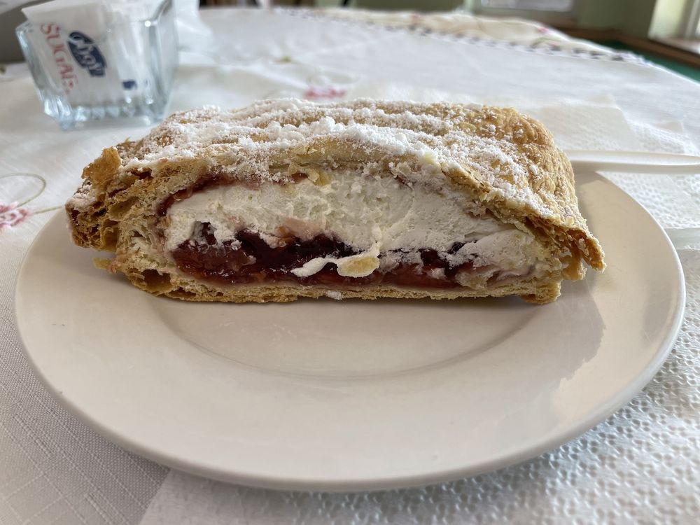 Soft cake dessert with lemon, strawberry or cappuccino cream filling.
